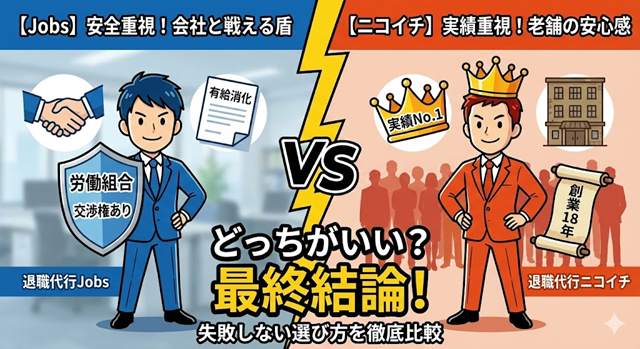 退職代行Jobs vs ニコイチ!どっちがいい?「労働組合」か「実績」かで選ぶ最終結論【徹底比較】